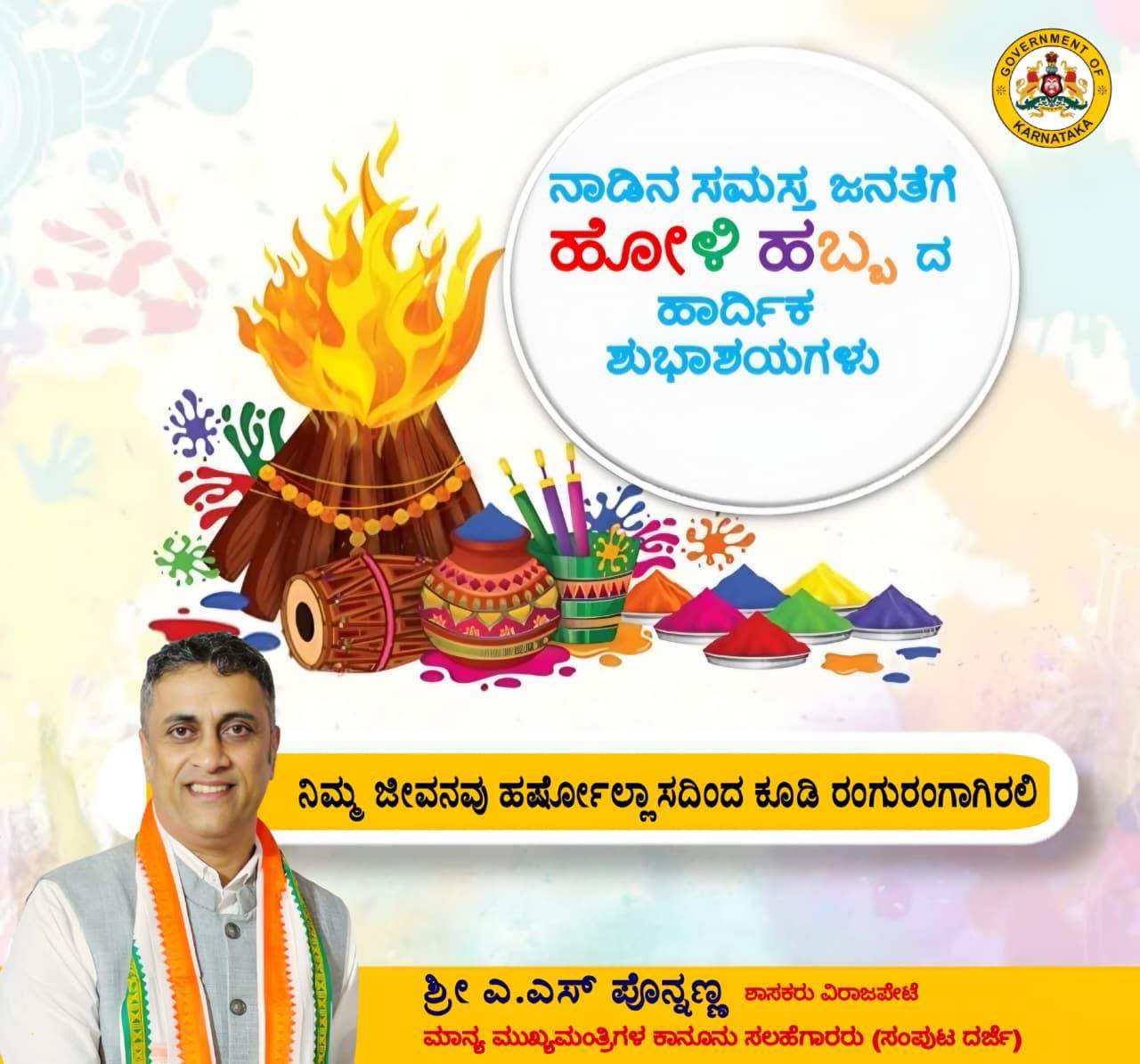 ನಾಡಿನ ಸಮಸ್ತ ಜನತೆಗೆ ಹೋಳಿ ಹಬ್ಬದ ಹಾರ್ದಿಕ ಶುಭಾಶಯಗಳು.