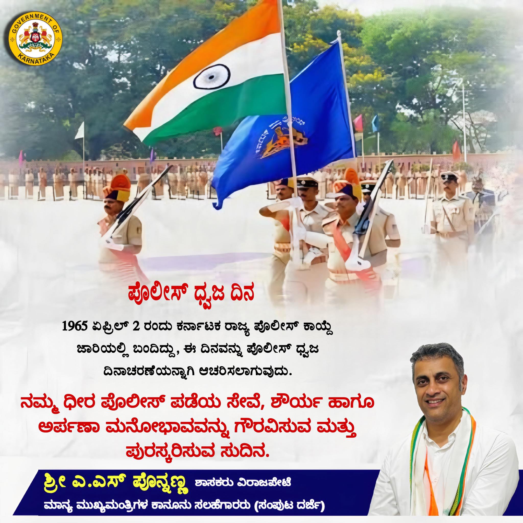 Police flag day Karnataka State Police Act was implemented on April 2, 1965, this day will be celebrated as Police Flag Day. A day to respect and reward our brave police force service, bravery and dedication spirit., 02/04/2026