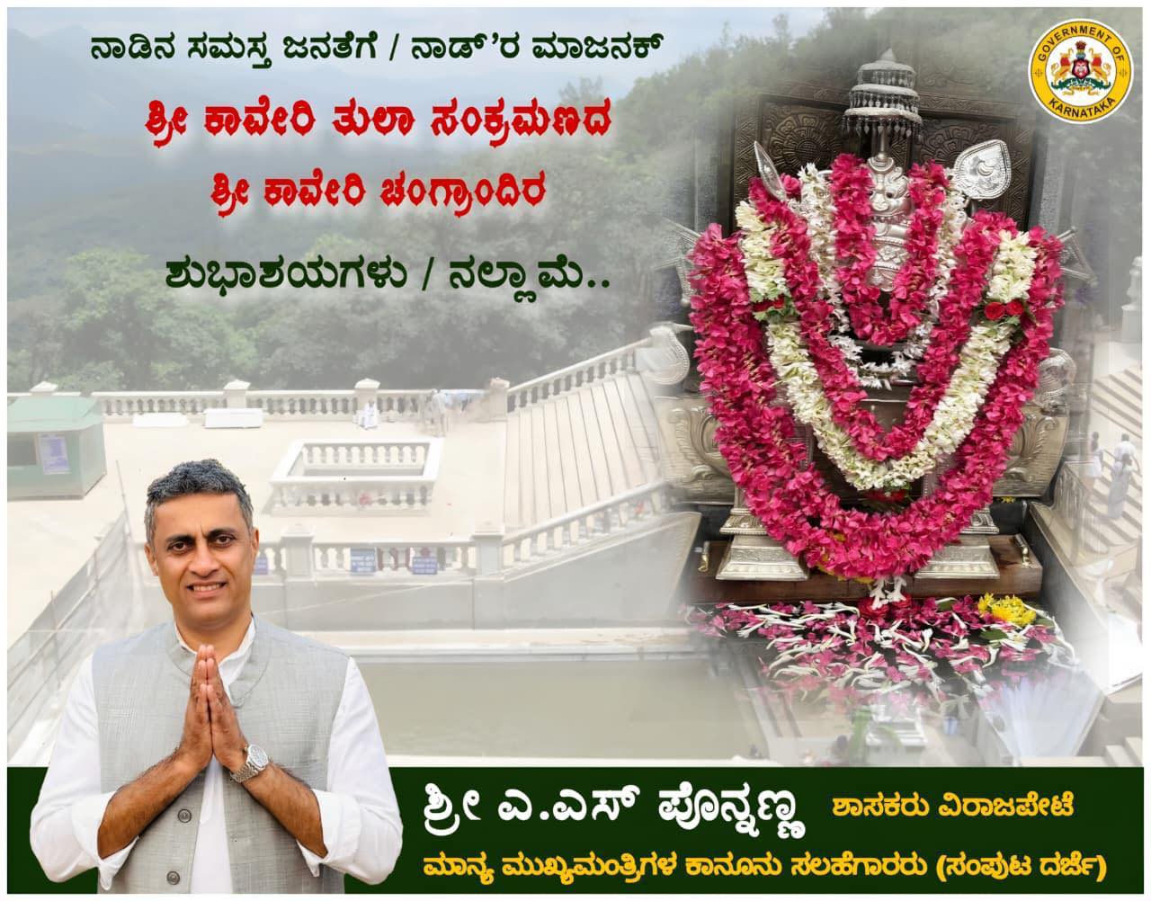 Happy Sri Kaveri Tula Sankramana to all the people of the state. Nad's Majanak Sri Kaveri Changrandira Nallame, 16/10/2025