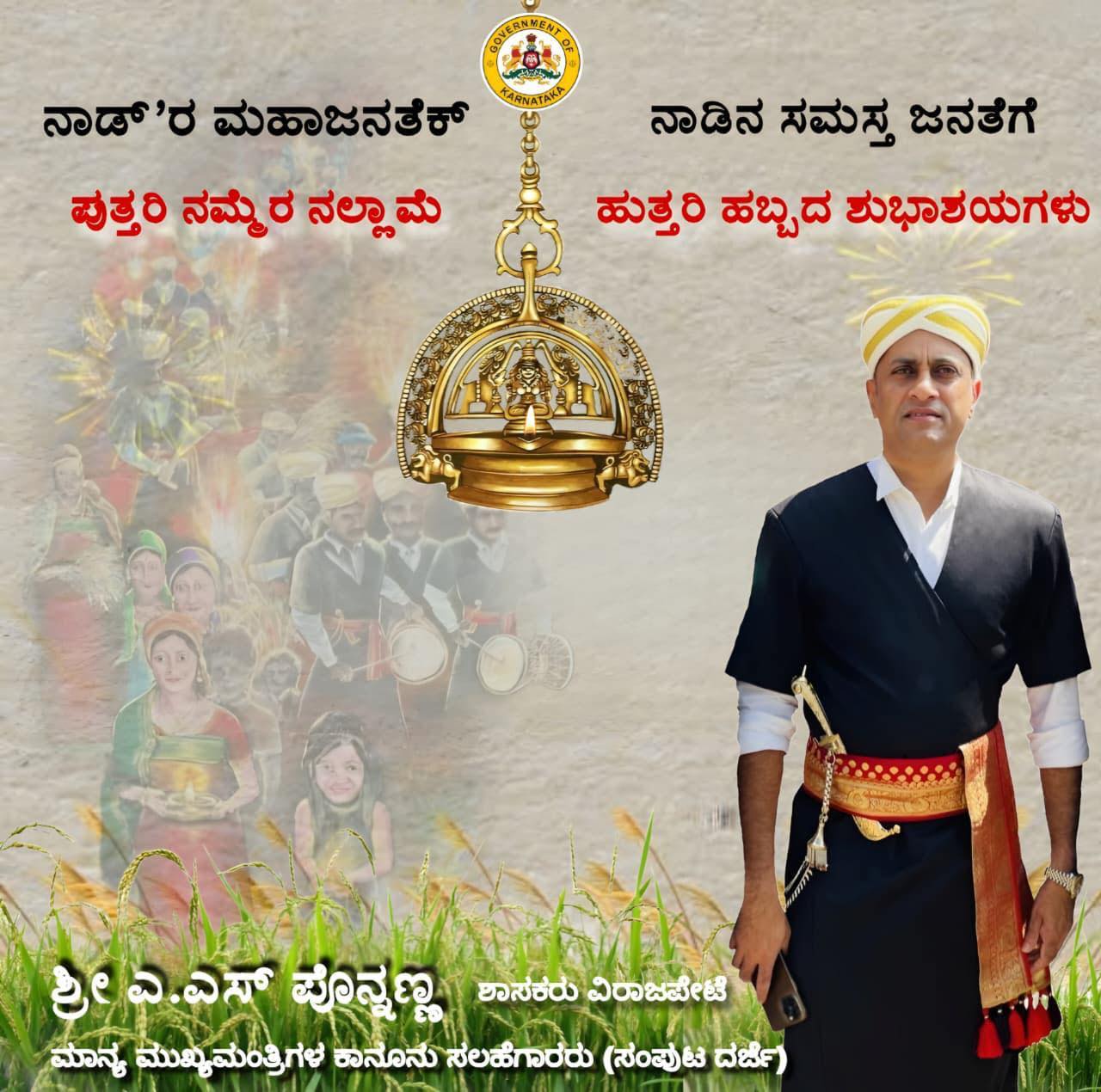 ನಾಡಿನ ಸಮಸ್ತ ಜನತೆಗೆ ಹುತ್ತರಿ ಹಬ್ಬದ ಶುಭಾಶಯಗಳು.
