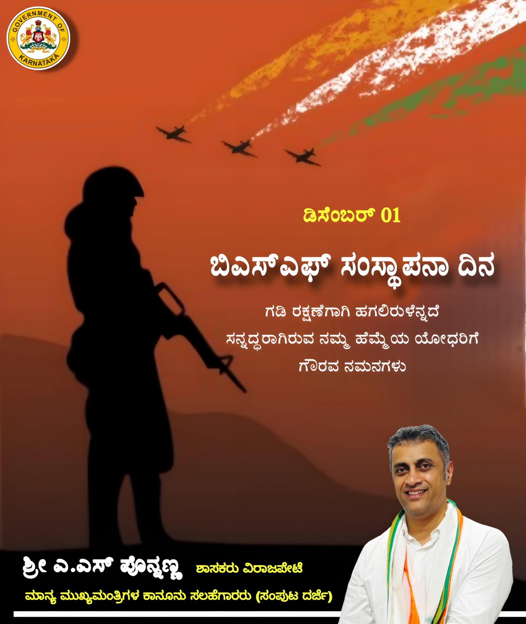 ಬಿಎಸ್ಎಫ್ ಸಂಸ್ಥಾಪನಾ ದಿನ ಗಡಿ ರಕ್ಷಣೆಗಾಗಿ ಹಗಲಿರುಳೆನ್ನದೆ ಸನ್ನದ್ಧರಾಗಿರುವ ನಮ್ಮ ಹೆಮ್ಮೆಯ ಯೋಧರಿಗೆ ಗೌರವ ನಮನಗಳು.