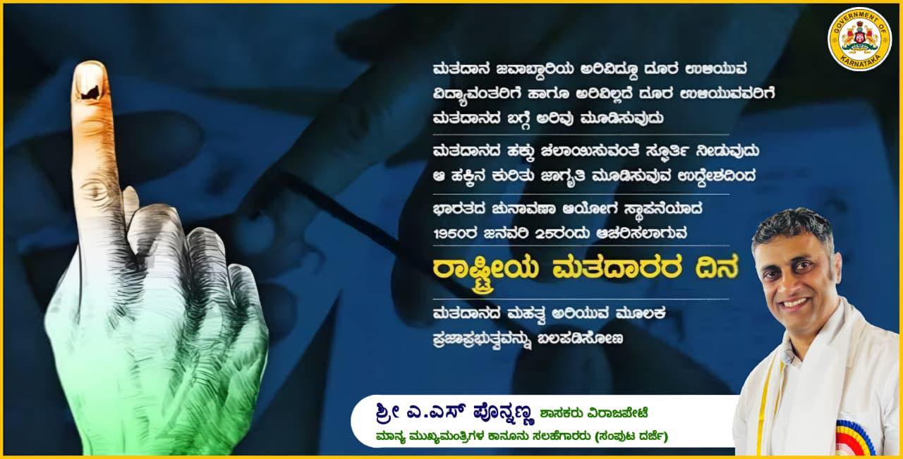 ಮತದಾನದ ಮಹತ್ವ ಅರಿಯುವ ಮೂಲಕ ಪ್ರಜಾಪ್ರಭುತ್ವವನ್ನು ಬಲಪಡಿಸೋಣ.
