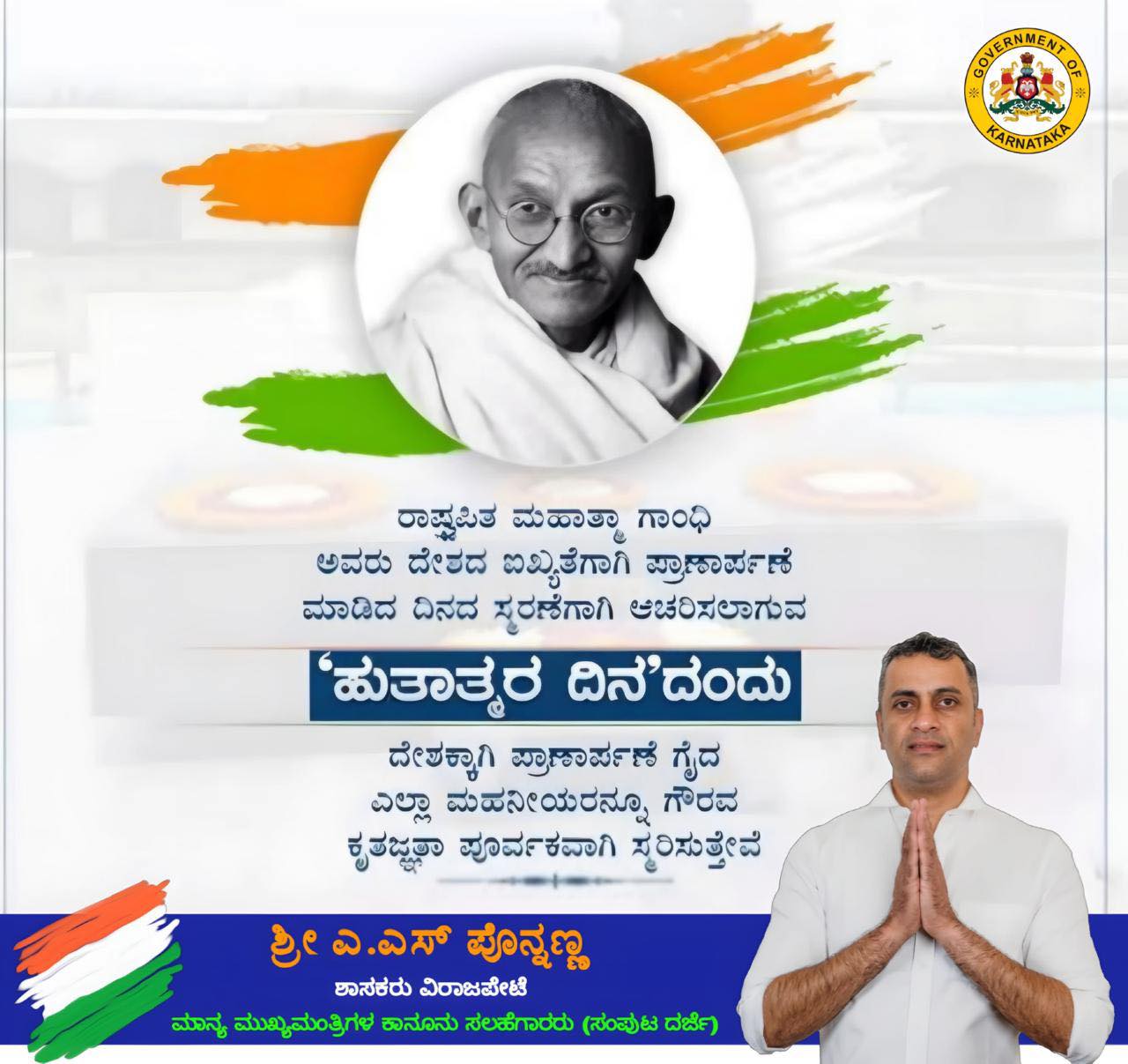ರಾಷ್ಟ್ರಪಿತ ಮಹಾತ್ಮಾ ಗಾಂಧಿ ಅವರು ದೇಶದ ಐಖ್ಯತೆಗಾಗಿ ಪ್ರಾಣಾರ್ಪಣೆ ಮಾಡಿದ ದಿನದ ಸ್ಮರಣೆಗಾಗಿ ಆಚರಿಸಲಾಗುವ