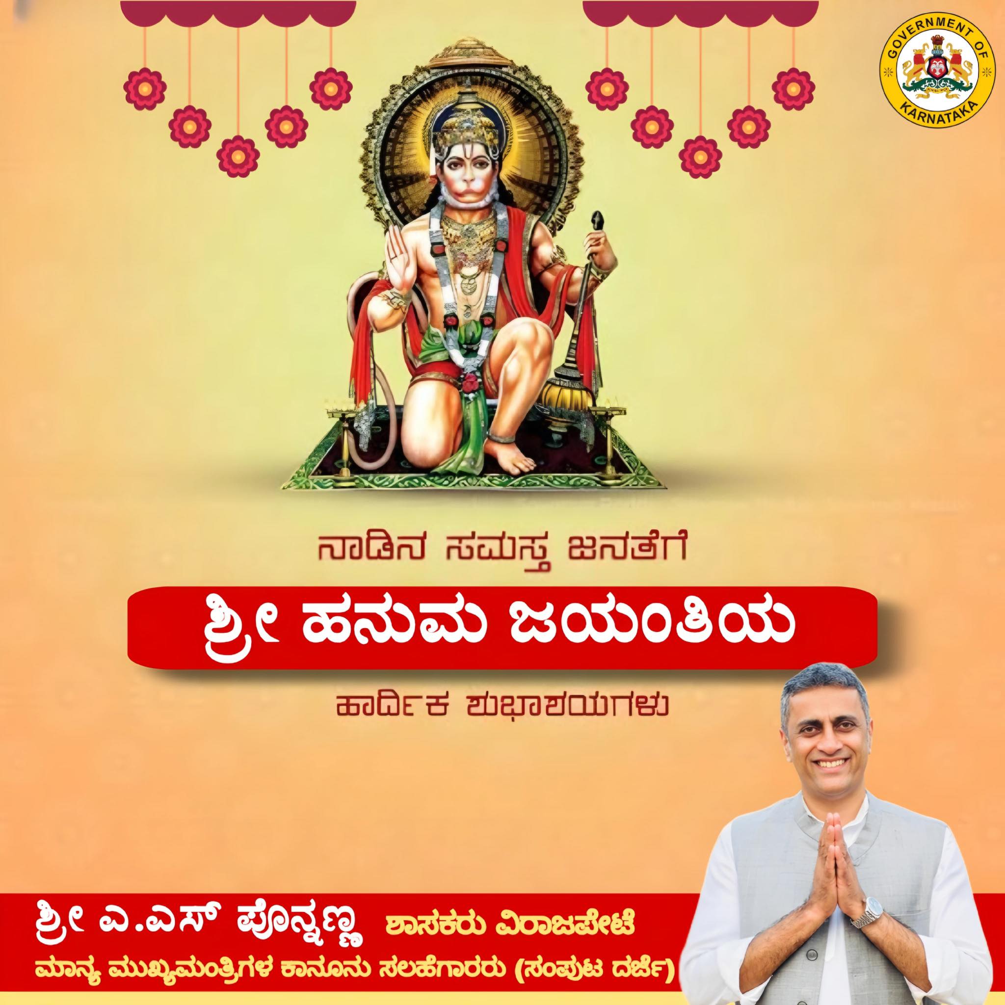 ನಾಡಿನ ಸಮಸ್ತ ಜನತೆಗೆ ಹನುಮ ಜಯಂತಿಯ ಶುಭಾಶಯಗಳು