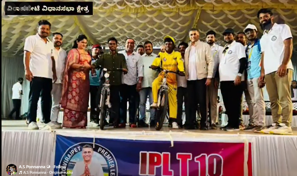 ವಿರಾಜಪೇಟೆಯ ಸಂತ ಅನ್ನಮ್ಮ ಶಾಲಾ ಮೈದಾನದಲ್ಲಿ ಆಯೋಜನೆಗೊಂಡ, ಐಪಿಎಲ್ ಟಿ-10 ಕ್ರಿಕೆಟ್ ಪಂದ್ಯಾಟದ ಪ್ರಶಸ್ತಿ ವಿತರಣೆ ಕಾರ್ಯಕ್ರಮದಲ್ಲಿ ಭಾಗವಹಿಸಿ ಆಟಗಾರರಿಗೆ ಶುಭ ಕೋರಲಾಯಿತು.