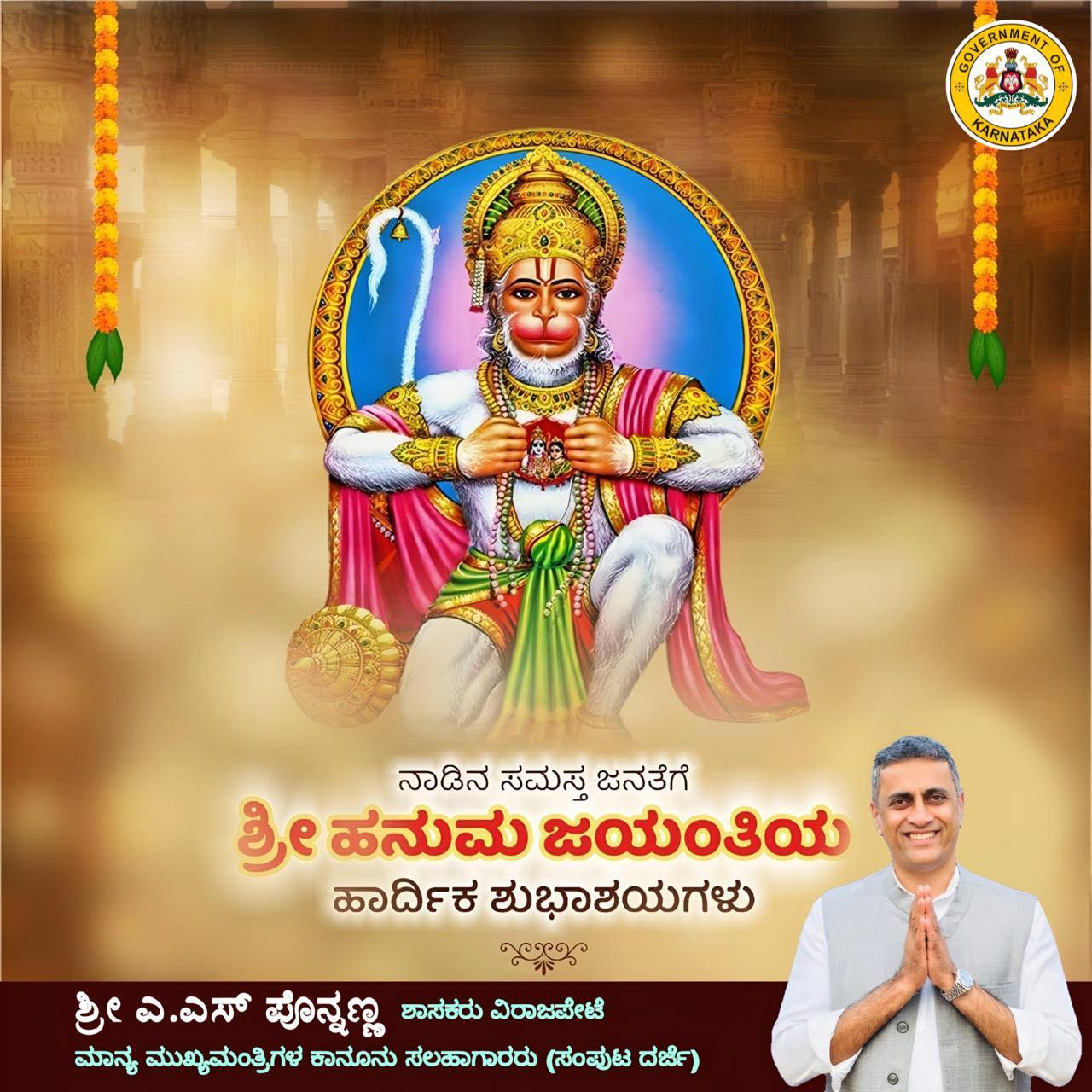 ನಾಡಿನ ಸಮಸ್ತ ಜನತೆಗೆ ಶ್ರೀ ಹನುಮ ಜಯಂತಿಯ ಹಾರ್ದಿಕ ಶುಭಾಶಯಗಳು.