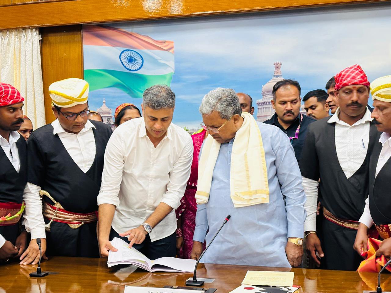 The Honorable Chief Minister was presented with a caste certificate by the President and office bearers of the Kembatti community, recognizing them under the Adi Karnataka category. A formal request was submitted to include Kembatti as a sub-caste in the, 03/11/2025