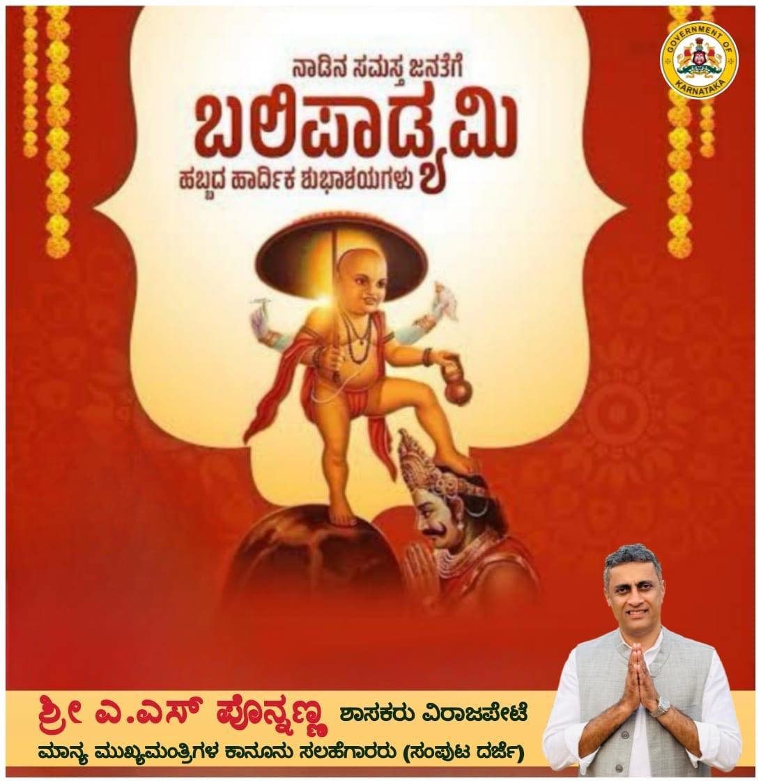 ನಾಡಿನ ಸಮಸ್ತ ಜನತೆಗೆ ಬಲಿಪಾಡ್ಯಮಿ ಹಬ್ಬದ ಹಾರ್ದಿಕ ಶುಭಾಶಯಗಳು.