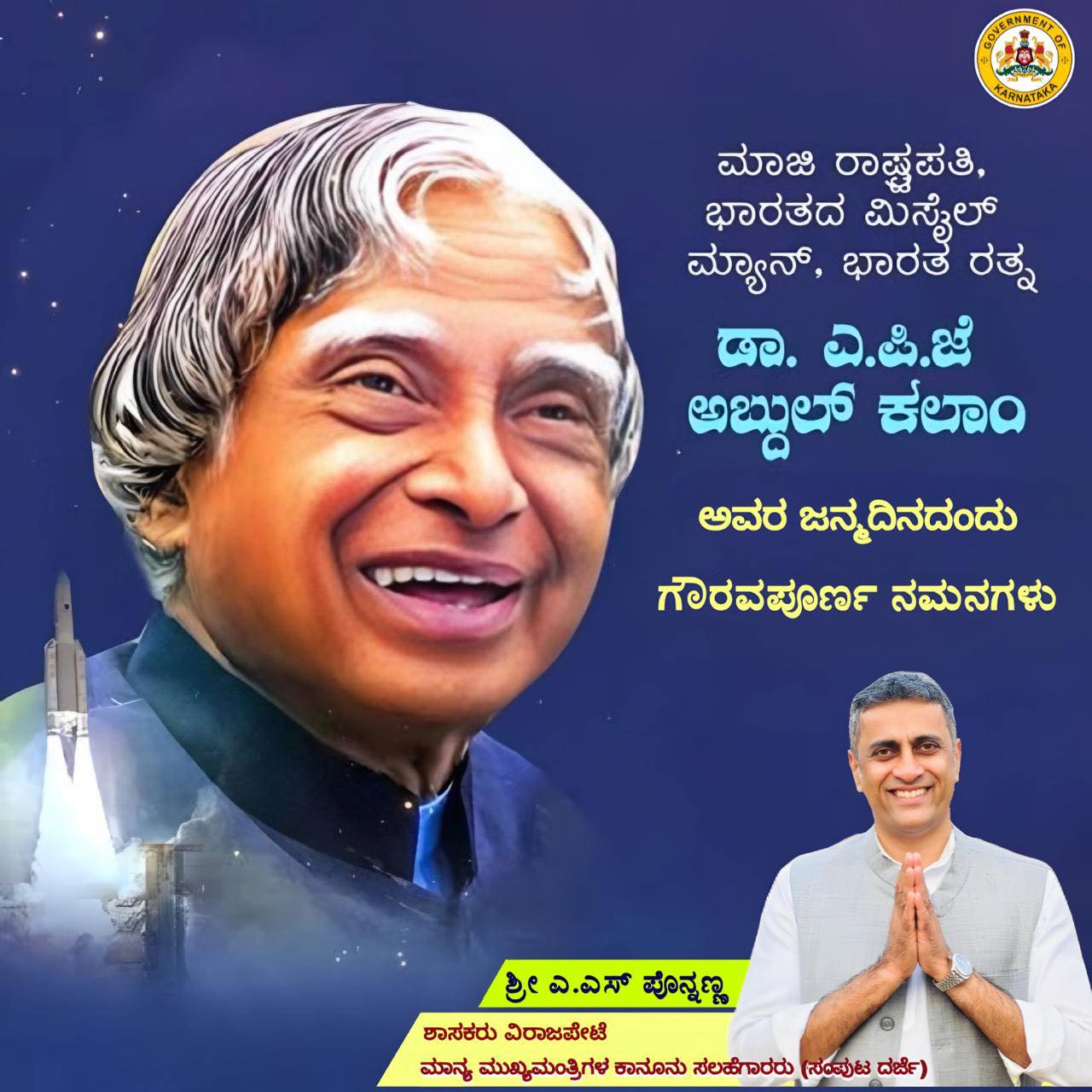 ಡಾ. ಎ.ಪಿ.ಜೆ ಅಬ್ದುಲ್ ಕಲಾಂ ಅವರ ಜನ್ಮದಿನದಂದು ಗೌರವಪೂರ್ಣ ನಮನಗಳು.
