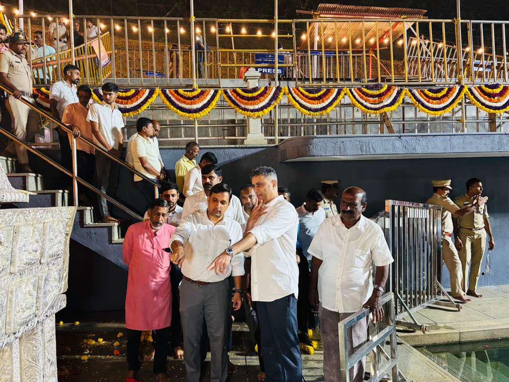 The preliminary preparation of Sri Kaveri Tulasankramana pilgrimage festival was inspected from Bhagamandala to Talakaveri and discussed with priests. Toilets, garbage bins and LED screens were arranged for the benefit of the devotees, district administra, 16/10/2025